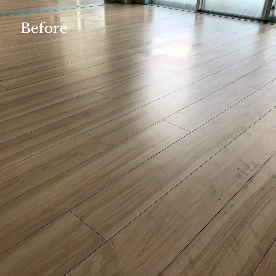 小さい子供が 2 人いて、おもちゃで床をガンガンやったりするので、とにかく傷が目立たないコーティングが希望でした。色々な種類のコーティングがあり、実際にショールームに伺って見比べたところ仕上がりの光沢が高くない方が良いねという結論になりました。ガラスコーティングとも迷いましたが、子供がいるので「塩素系の洗剤で掃除ができる」「傷がついても目立ちにくい」「ガラスコーティングよりも擦りにくい」ということでこちらのコーティングをお願いしました。乾燥期間も要らずコーティングが完了した日から入室できる所もポイントアップです。