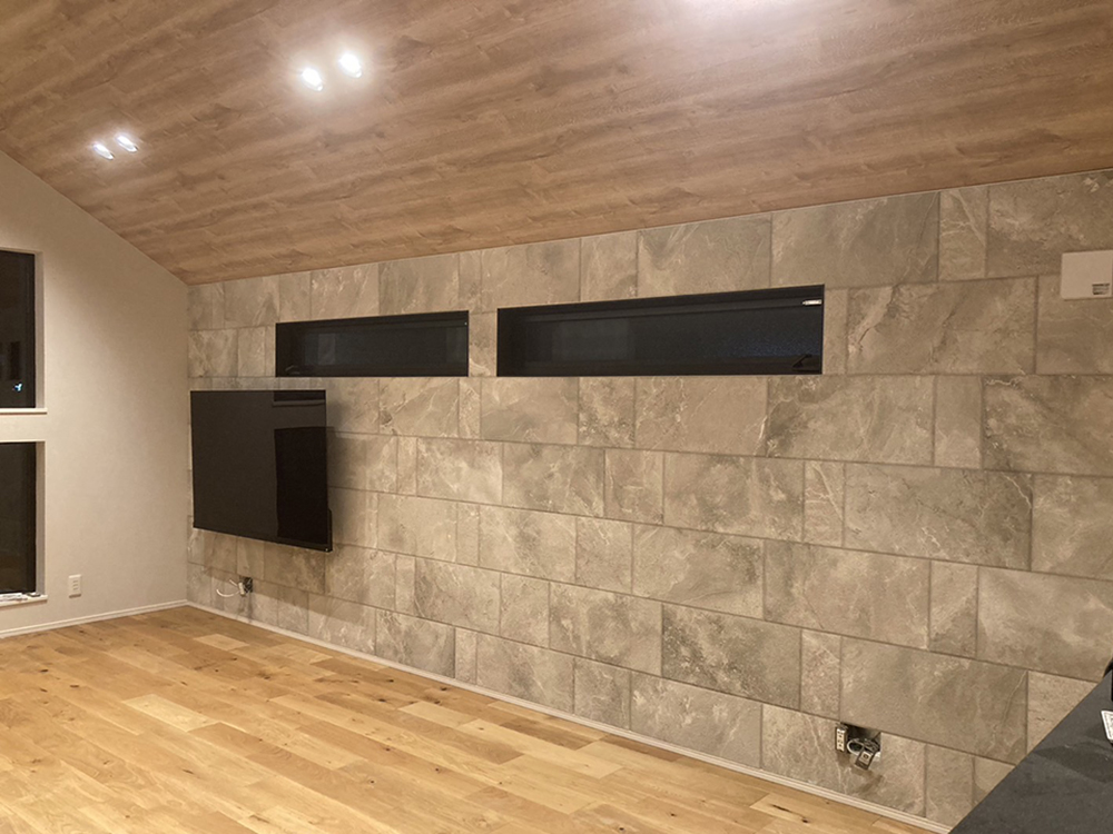 【施工内容】 ・エコカラット ・壁掛けテレビ サンティエ(アイボリー)+ 壁掛けテレビ